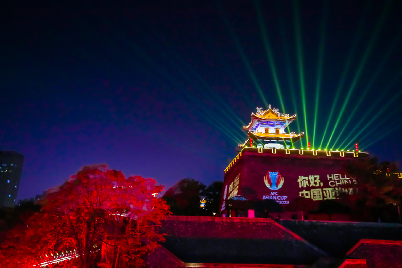 2023年亚足联中国亚洲杯足球赛将在包括西安在内的10座城市举行。按照亚洲杯组委会的统一安排,10月28日晚,亚洲杯主题灯光秀在西安城墙景区精彩亮相,缤纷多彩的光影盛宴揭开了古城西安喜迎第18届亚足联亚洲杯足球赛的帷幕。