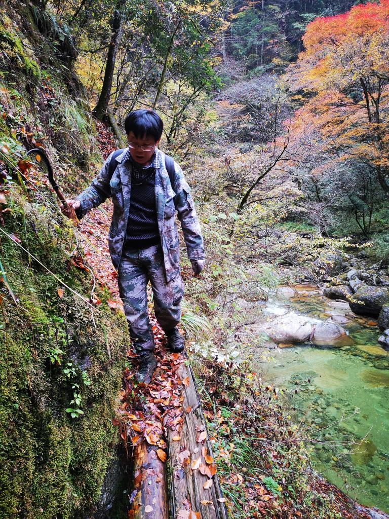 渐入初冬,巍巍秦岭层林尽染。陕西佛坪国家级自然保护区内,头戴棒球帽、身着迷彩服的熊柏泉正蹲在森林里,认真地填写着野外调查记录表,似乎感受不到透着湿气的寒意。