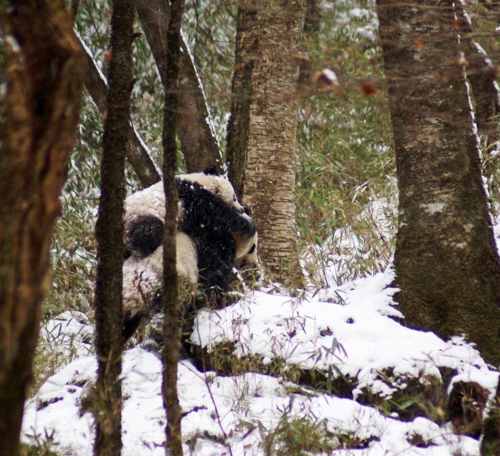 佛坪保护区内生活着大熊猫、川金丝猴、羚牛、朱鹮等珍稀野生动物。熊柏泉说,野外工作的辛苦在遇见这些自然“精灵”的那一刻就荡然无存了。“我碰到大熊猫的次数数不胜数,但每一次碰见了,还是爱得很,熊猫都是‘乖宝宝’。”说起大熊猫,熊柏泉的喜爱之情溢于言表。他兴奋地给记者展示他拍摄的熊猫照片,“这张熊猫背幼崽的照片也是我拍的,当时还引起了一阵轰动哩”。