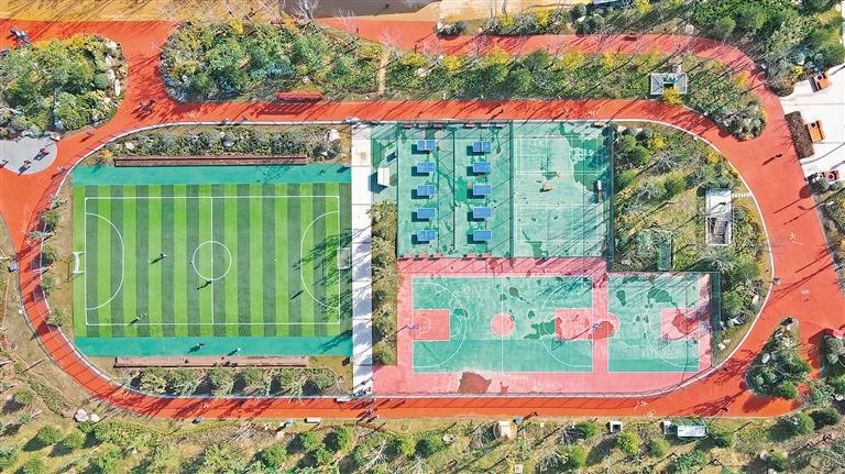 鸟瞰幸福林带二期动之谷体育场。