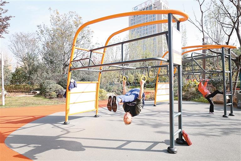 在幸福林带二期动之谷,市民利用器械锻炼身体。