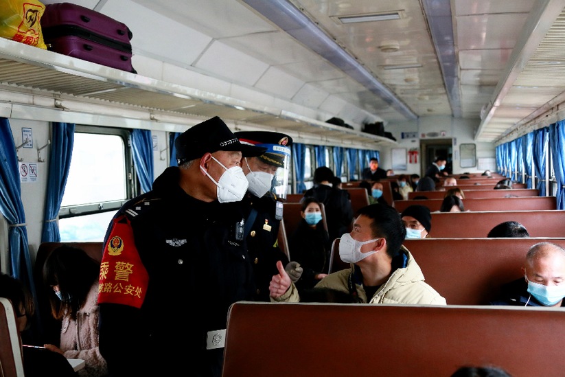 2022年1月30日列车长和乘警认真的工作态度赢得旅客的点赞