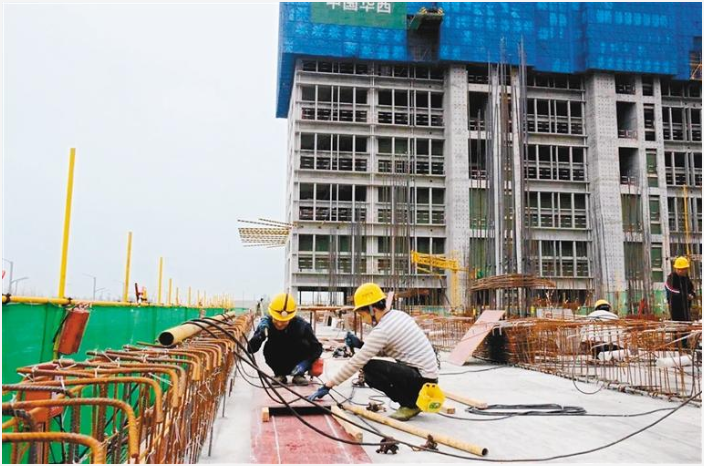 在长安大学城商业中心项目之一的常宁雅居乐花园H区商业综合体施工现场,记者看到上百名工人正有条不紊地忙碌着,现场焊接声不绝于耳……