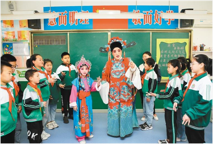 “祖籍陕西韩城县,杏花村中有家园......”4月13日下午5时,悦耳的童声唱腔从鄠邑区北街小学一间教室飘出,记者闻声走近一看,原来是秦腔课后服务兴趣班的孩子们正有板有眼地跟着老师学习唱念做打表演。
