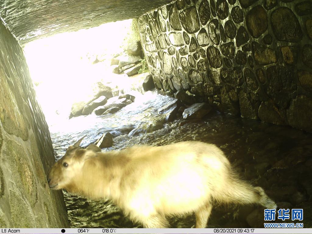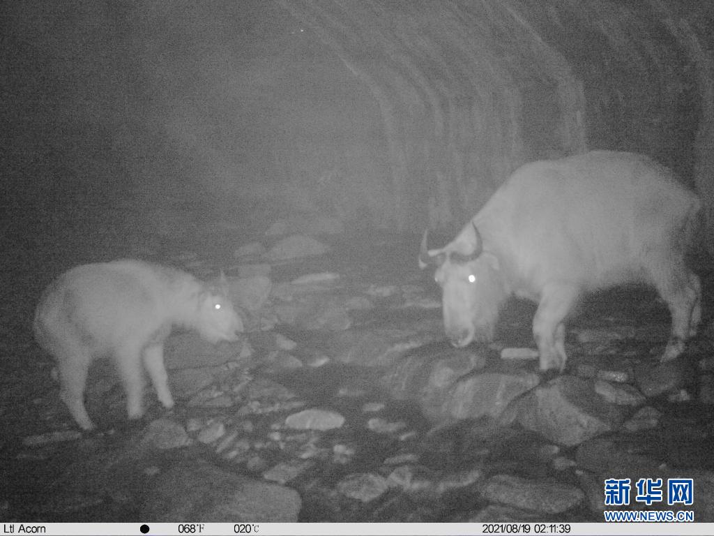 红外相机拍摄的羚牛凌晨两点经过野生动物通行通道的照片(陕西省龙草坪林业局供图)