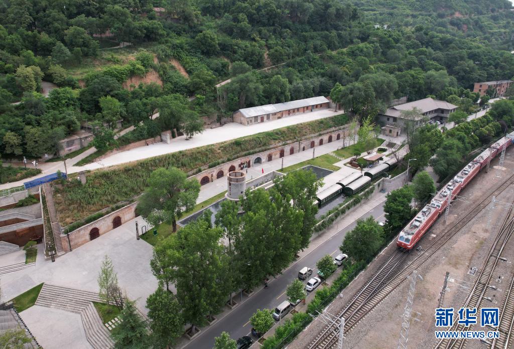 陇海铁路旁的长乐塬抗战工业遗址“窑洞工厂”(6月9日摄,无人机照片)。