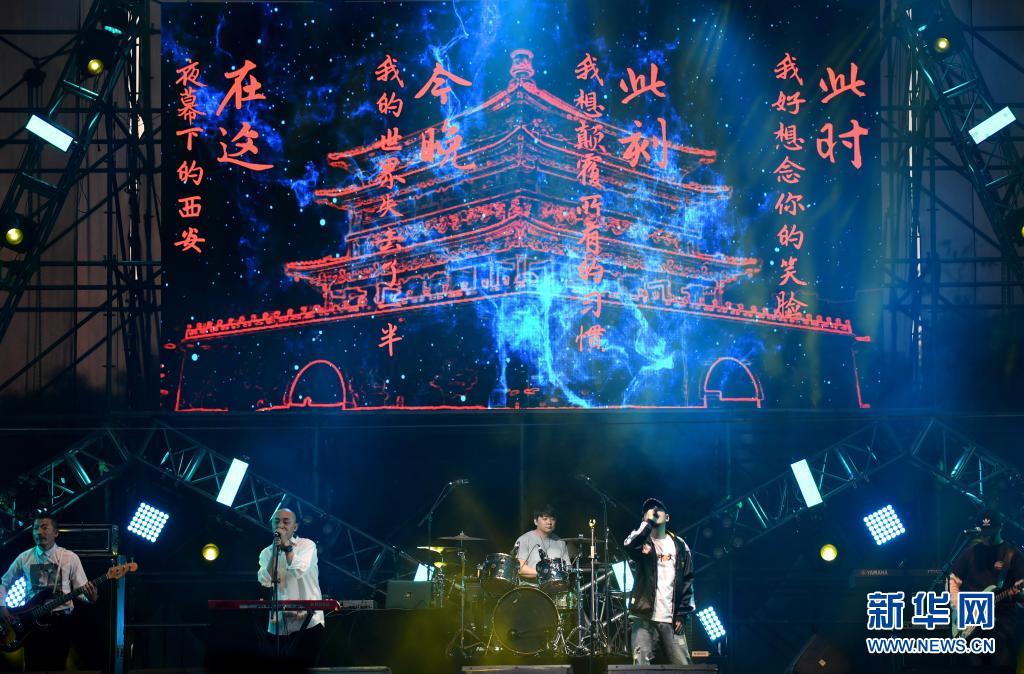 乐队在西安草莓音乐节上表演(2020年11月1日摄)。
