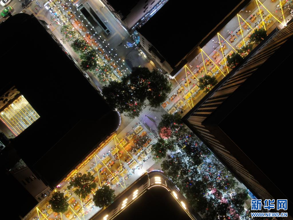 6月28日拍摄的延安市延州二道街夜市(无人机照片)。