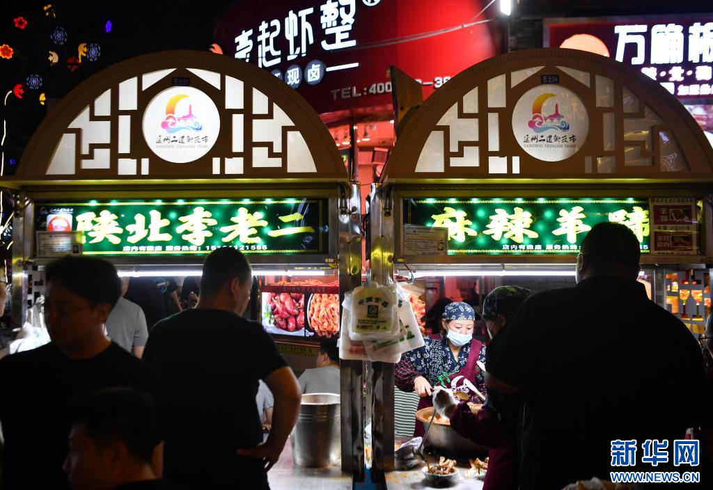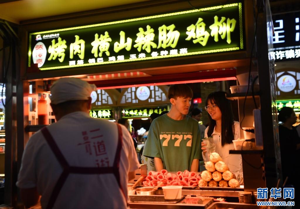 6月28日,游客在延安市延州二道街夜市购买小吃。