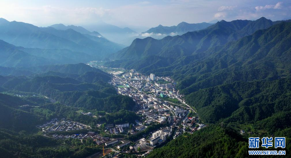位于秦岭深处的陕西省汉中市留坝县城(7月25日摄,无人机照片)。