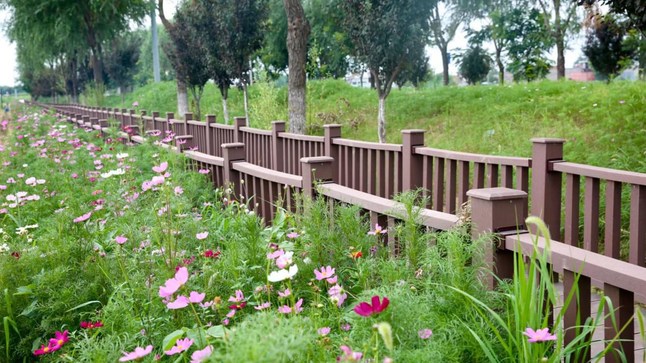 高陵区智慧农业园区位于西韩大道与321县道交汇处西侧,走近长廊放眼望去,一片片整齐的玉米苗伴随微风荡起青色涟漪,廊道旁林木交错,花草点缀其间,目之所及皆是景。宽敞平整的景观步道上,三三两两的村民漫步在“天然氧吧”之中。