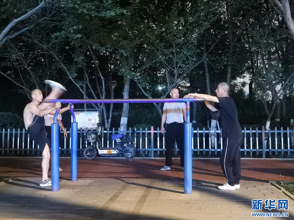 8月6日晚,市民在位于西安市未央区的一处公园内锻炼(手机照片)。