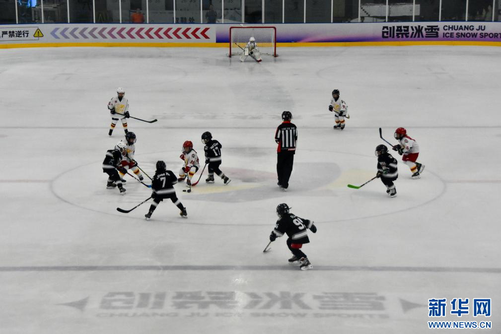 8月5日晚,一场青少年冰球比赛在西安市“创聚冰雪”真冰场举行(手机照片)。