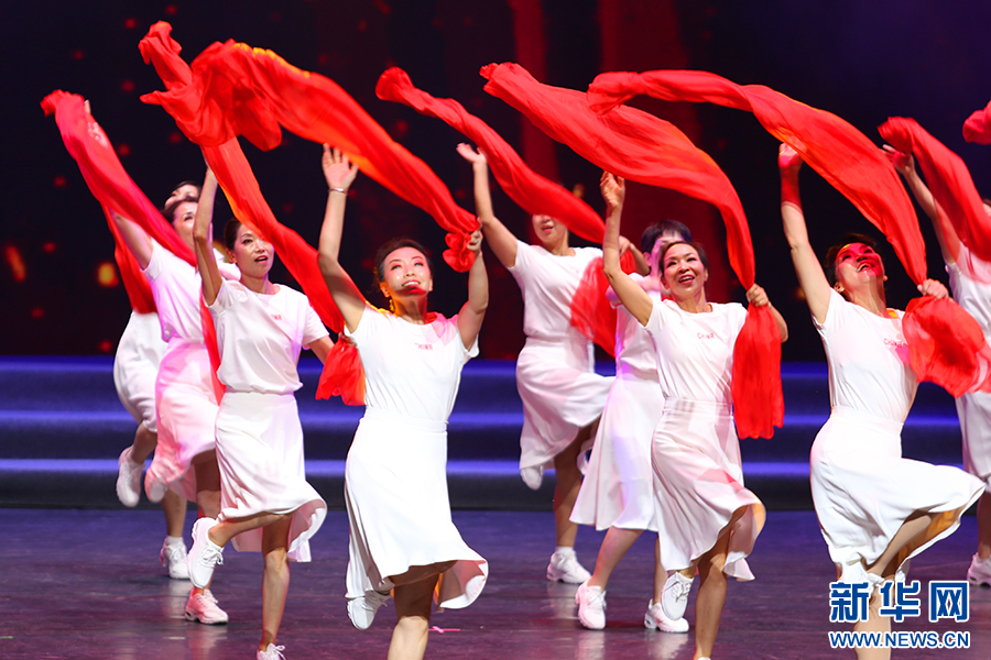 8月8日,在2023陕西省广场舞展演上的《红色的旋律》表演。新华网 杨喜龙 摄