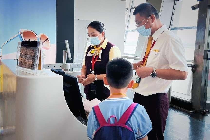 图:长安航空地面工作人员协助“无陪儿童”检票