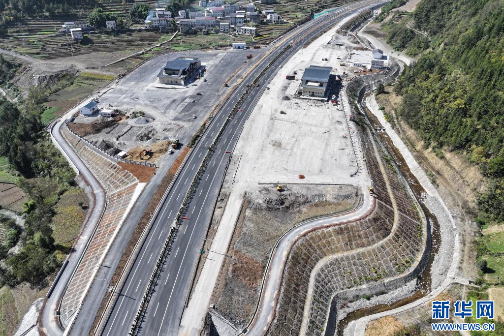 巫镇高速公路白鹿服务区施工现场(11月1日摄,无人机照片)。