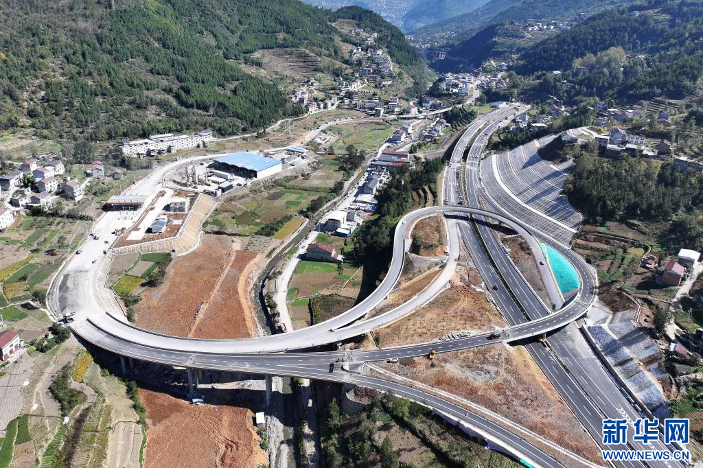 巫镇高速公路中坝互通施工现场(11月1日摄,无人机照片)。