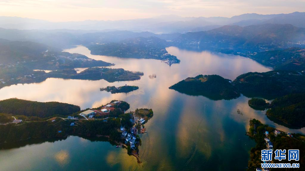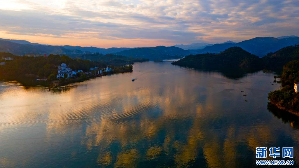 10月31日,夕阳西下,安康汉江瀛湖山水倒映成趣。赵华斌 摄