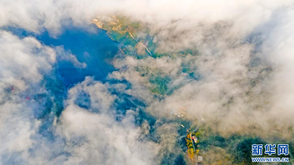 这是11月1日无人机拍摄的安康瀛湖云海景色。赵华斌摄