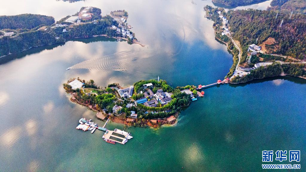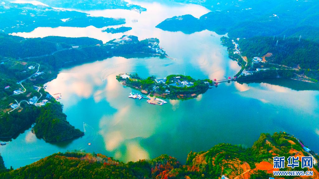 这是10月31日无人机拍摄的安康瀛湖翠屏岛风景。赵华斌 摄
