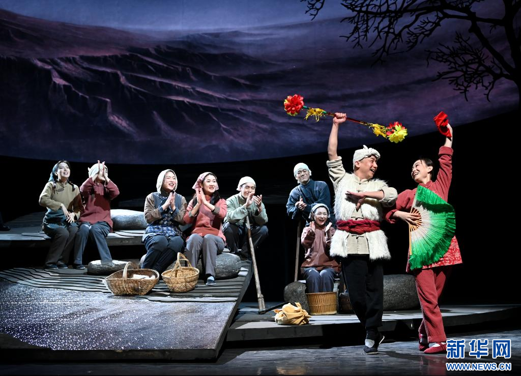 2月14日,在西安新城剧场,西安话剧院的演员为观众表演话剧《延水谣》。