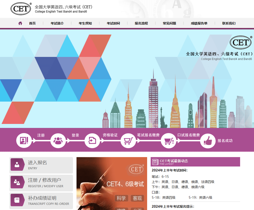 (二)报考CET-SET应先完成对应级别笔试科目的报考,即完成本次CET4笔试报名后可报考CET-SET4,完成本次CET6笔试报名后可报考CET-SET6。
