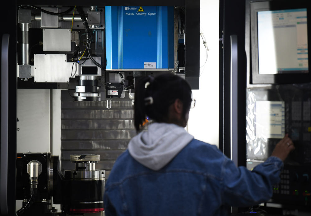 3月11日,中科微精生产车间中一台超快激光微加工设备正在作业。新华社记者 张博文 摄