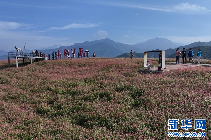 新华社西安6月6日电(记者张斌、林胜概、安展)每到初夏,陕西省西安市蓝田县九间房镇峪口村的千亩荞麦花就会铺满山坡,微风拂过,粉白色的花海泛起阵阵涟漪,与苍翠的秦岭相互交织,绘出一幅诗意的风光画卷。