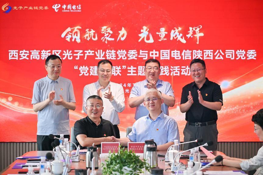 7月18日,西安高新区光子产业链党委和中国电信陕西公司党委“领航聚力、光量成辉”党建翼联主题实践活动在曲率引擎硬科技企业社区举行。活动中,光子产业链党委与中国电信陕西公司党委共同发布《光量融合协同发展倡议书》,签署《“党建翼联”活动合作书》,为“党建翼联共建示范党组织”揭牌。