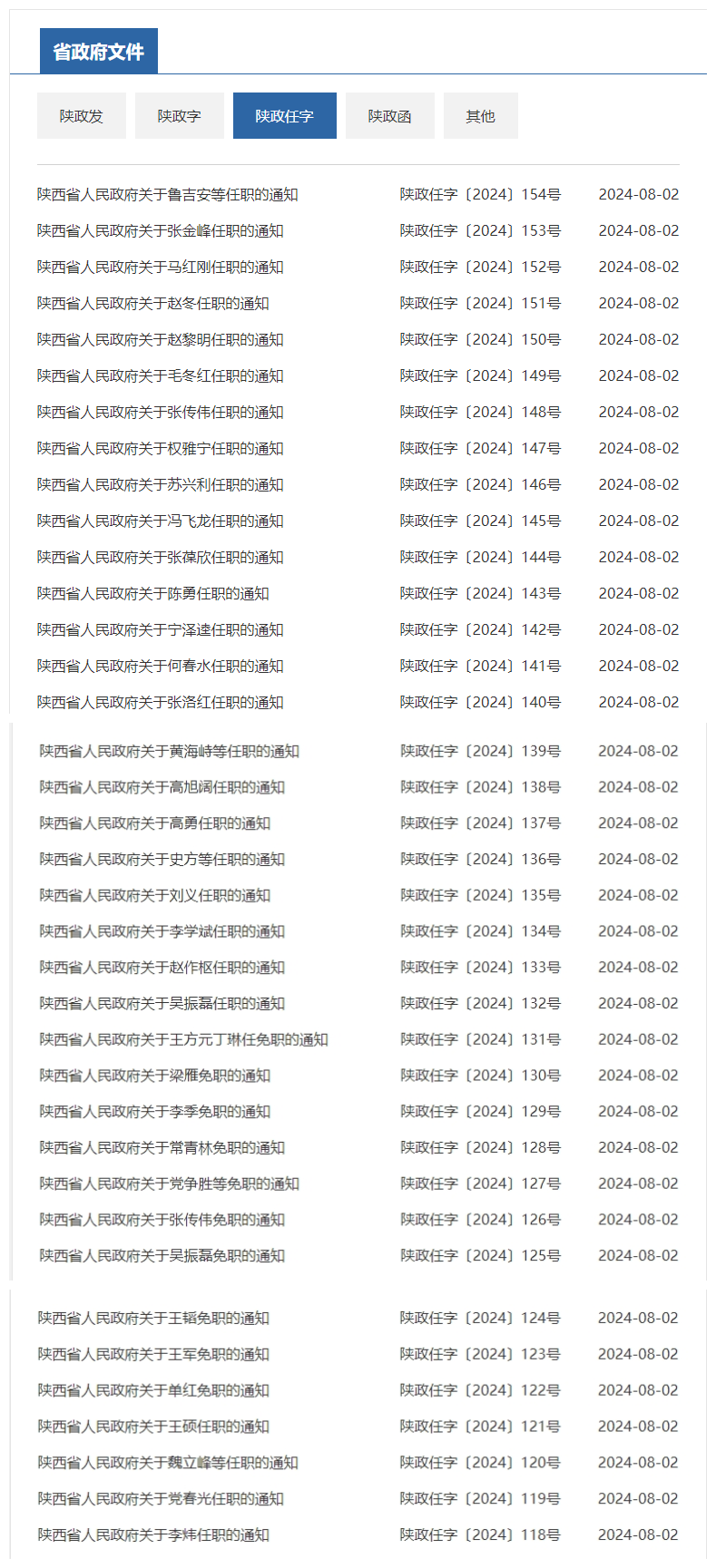 8月2日,陕西省人民政府网站发布一批人事任免通知。