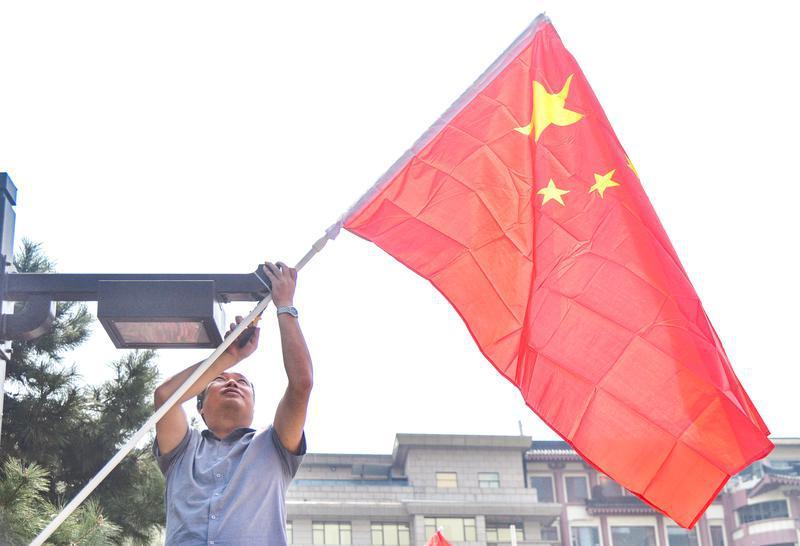 西安钟楼红旗飘扬 国庆氛围感已拉满