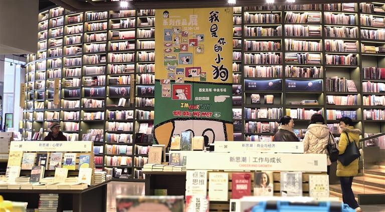 在西安方所,高达5米的环状“中央书塔”格外震撼,密密麻麻的书籍梳理着中外大事。书塔内别有洞天,一场有趣的漫画展正在进行,墙上生动的小狗图片和动物用品,吸引人们观看、触摸。