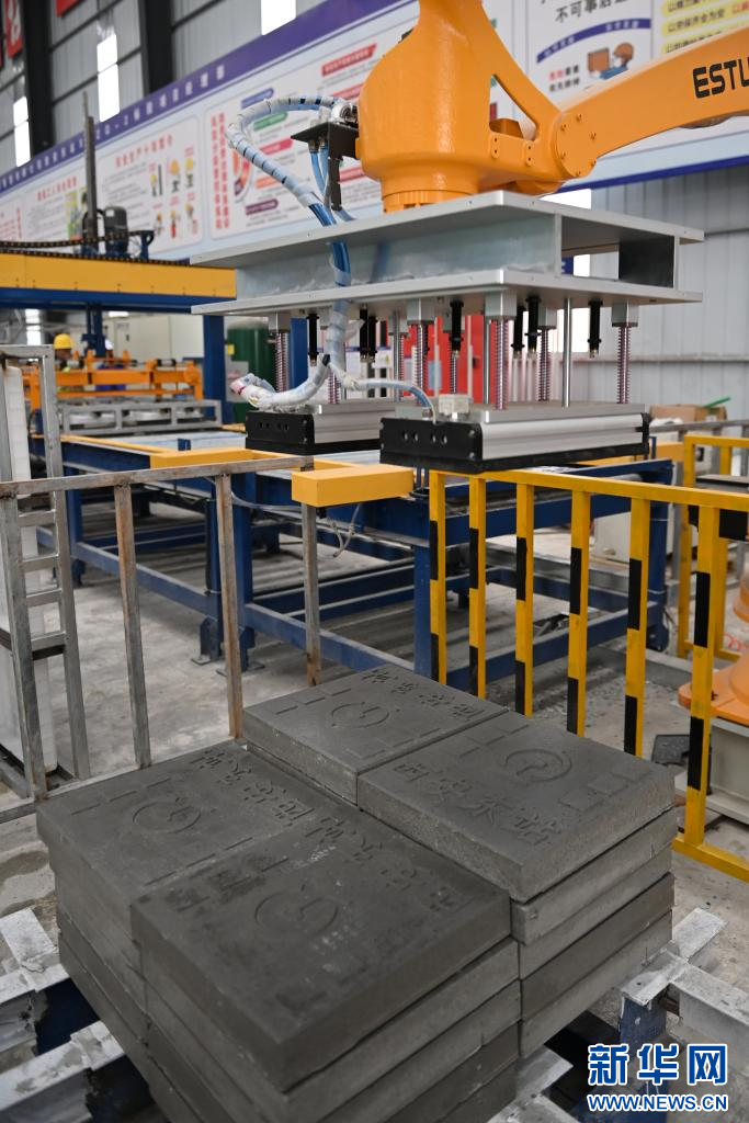 2月28日,在中铁二十二局西安东站小型预制构件智能化生产流水车间,智能设备加工预制构件。
