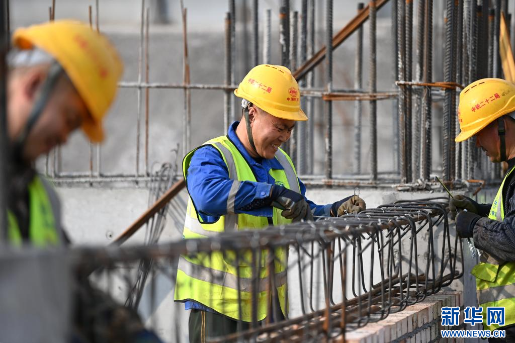2月28日,中铁二十二局施工人员在西安东站进行施工建设。