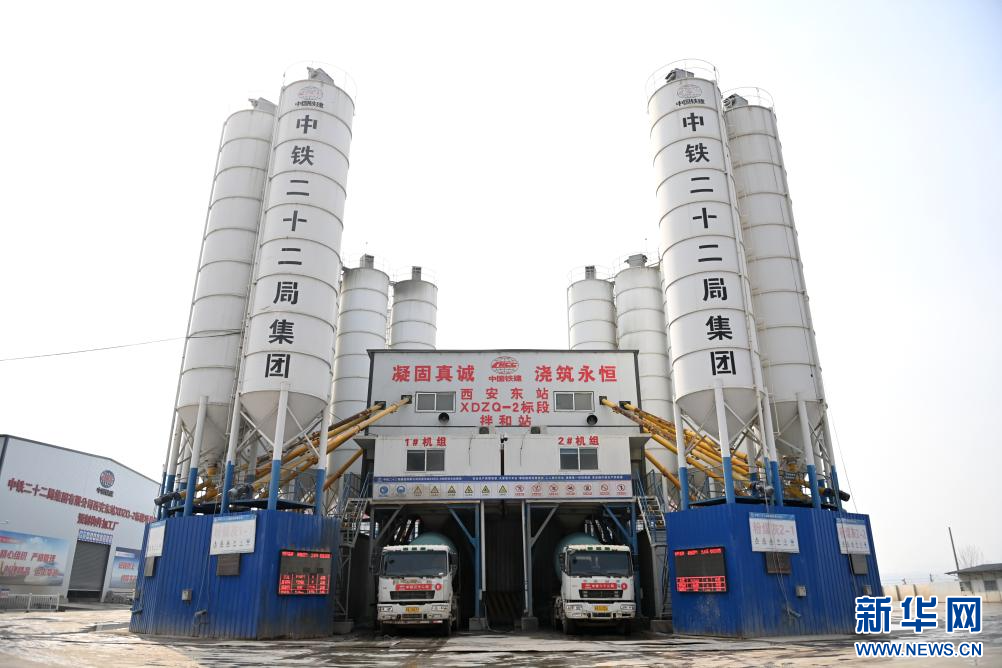 2月28日,中铁二十二局XDZQ-2标段拌和站为西安东站建设生产水泥混凝土。