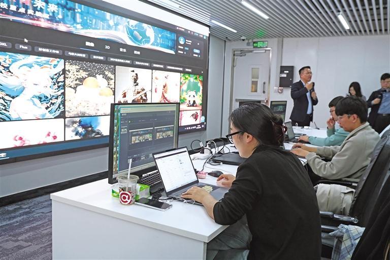 四月十一日,在西安雁塔人工智能创新发展中心,工作人员利用大屏幕展示算力支持数字文旅建设的应用场景。 记者 田若楠摄