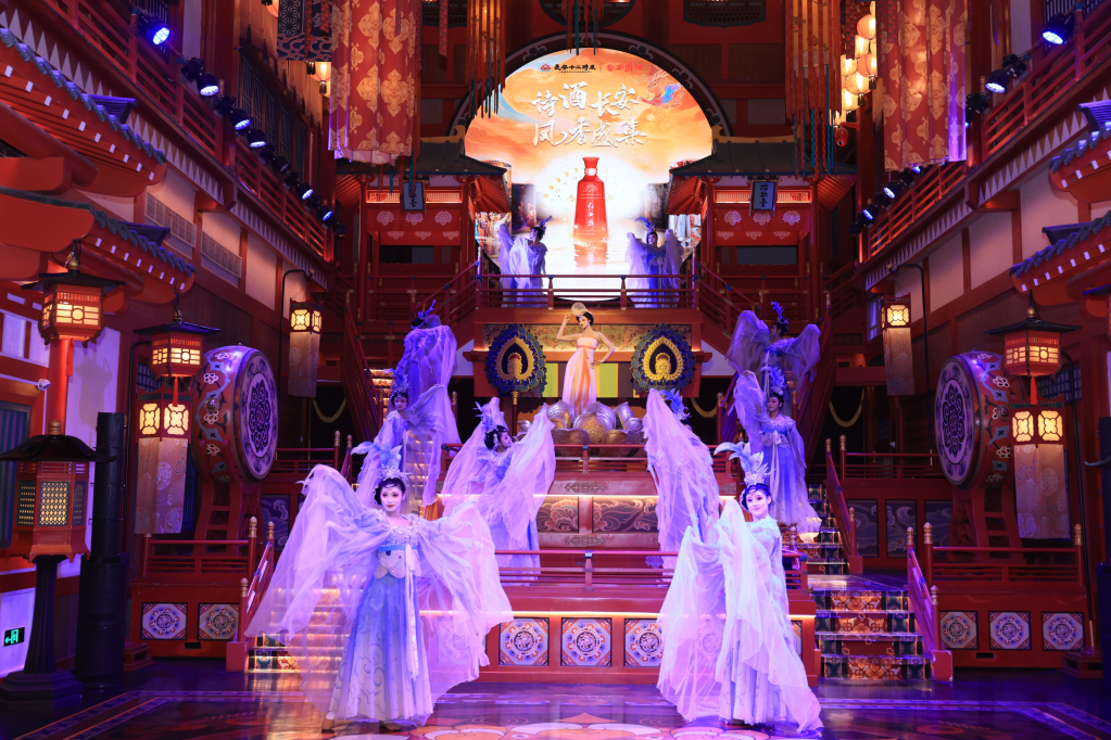 本次活动以长安十二时辰街区为舞台,在“盛唐坊市”的灯火里构建了一场诗与酒、古都长安与民族品牌、历史传承与时代创新的古今对话。伴着《将进酒》《霓裳羽衣舞》等演出,以及投壶、套圈、射箭、品酒、对诗游戏互动和书法书签、漂漆书签、吹糖人非遗体验,千年凤香醇厚与千年盛唐气象交相辉映。