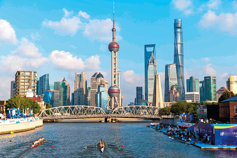 上艇最具观赏性的4.2公里追逐赛、500米城市冲刺赛的终点,都设在黄浦区外滩源码头。这里有陆家嘴东方明珠和三座摩天大楼,被称为上海知名景点“四件套”,令海内外参赛运动员和观众对上海的城市风貌印象深刻。