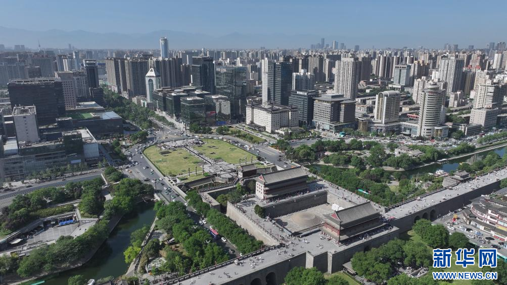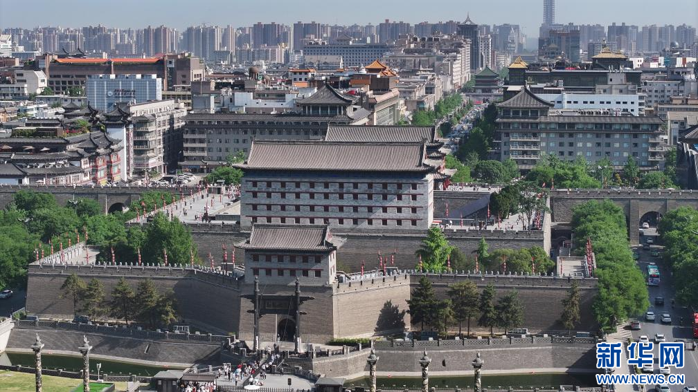这是西安城墙永宁门(5月2日摄,无人机照片)。