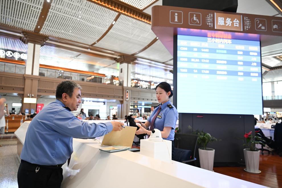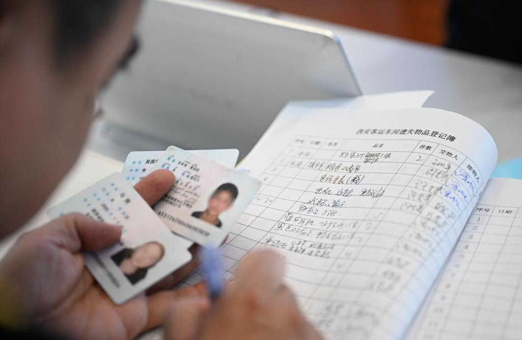 5月2日,谭仲元对当日旅客遗失的身份证件进行登记。新华社记者 张博文 摄