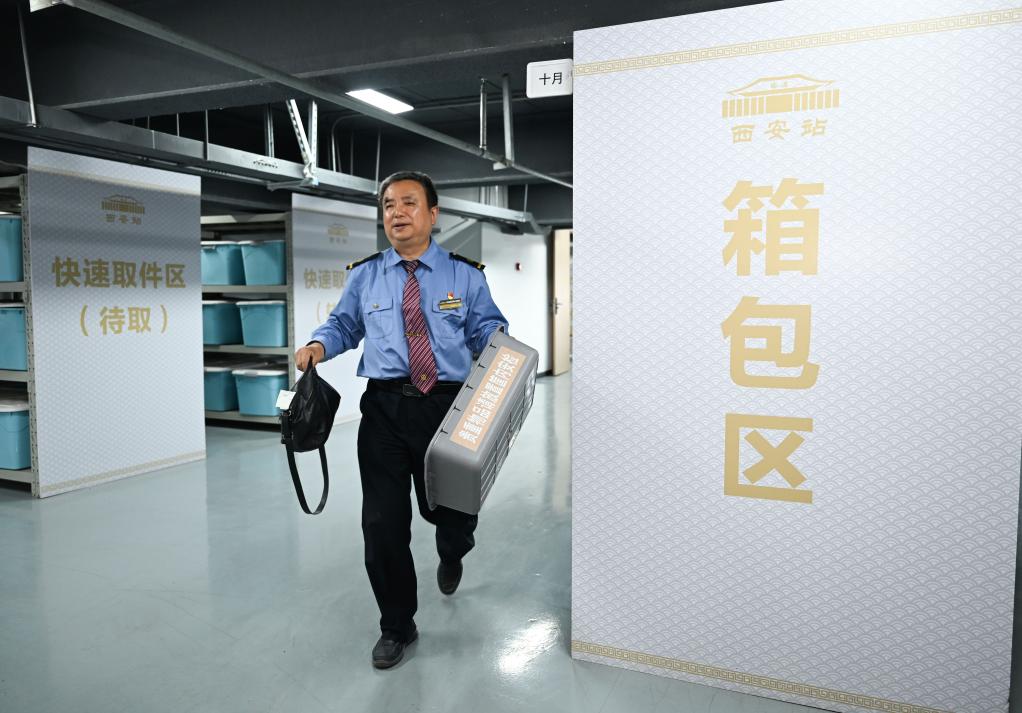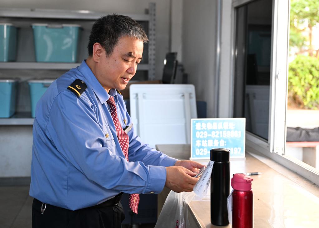 从一把钥匙、一包零食到手机、电脑、拉杆箱……走进西安站遗失物品招领处库管区,千余件各样物品整齐归类码放,等候失主的认领。遗失物品招领处工作人员谭仲元,今年56岁,作为一名“老铁路”,节假日坚守岗位是他的常态。“五一”小长假期间,老谭每天往返于站台、候车大厅、安检口等场所收集旅客遗失物品,日均步行超过两万步。