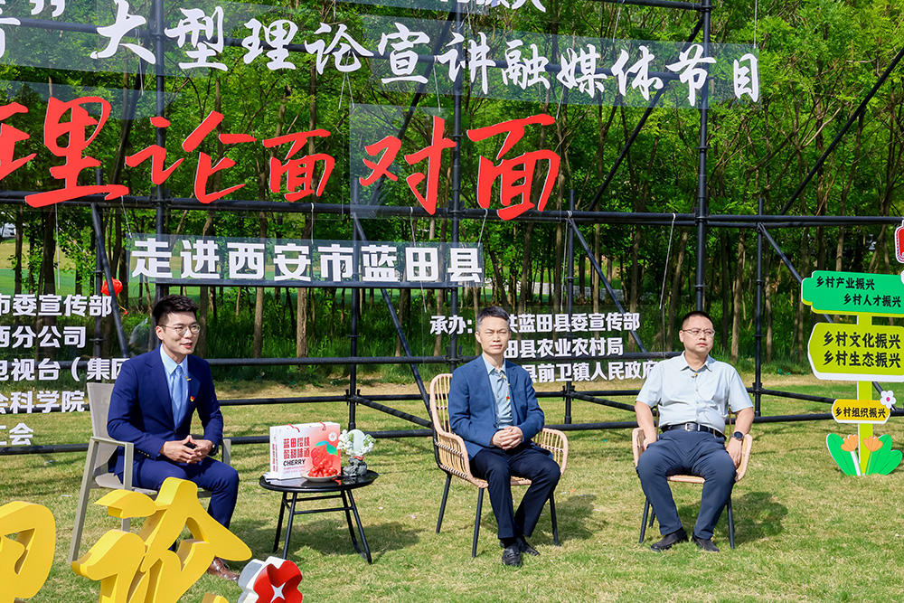 5月9日,“时代强音”大型理论宣讲融媒体节目《理论面对面》走进陕西蓝田县专场活动举行。来自高校的专家学者与各领域优秀宣讲员共同围绕“加速产业赋能,推进乡村振兴”主题,通过案例分享、专家解读、情景演绎等形式,将党的创新理论与蓝田县乡村振兴实践深度融合,为当地乡村振兴注入新动能。