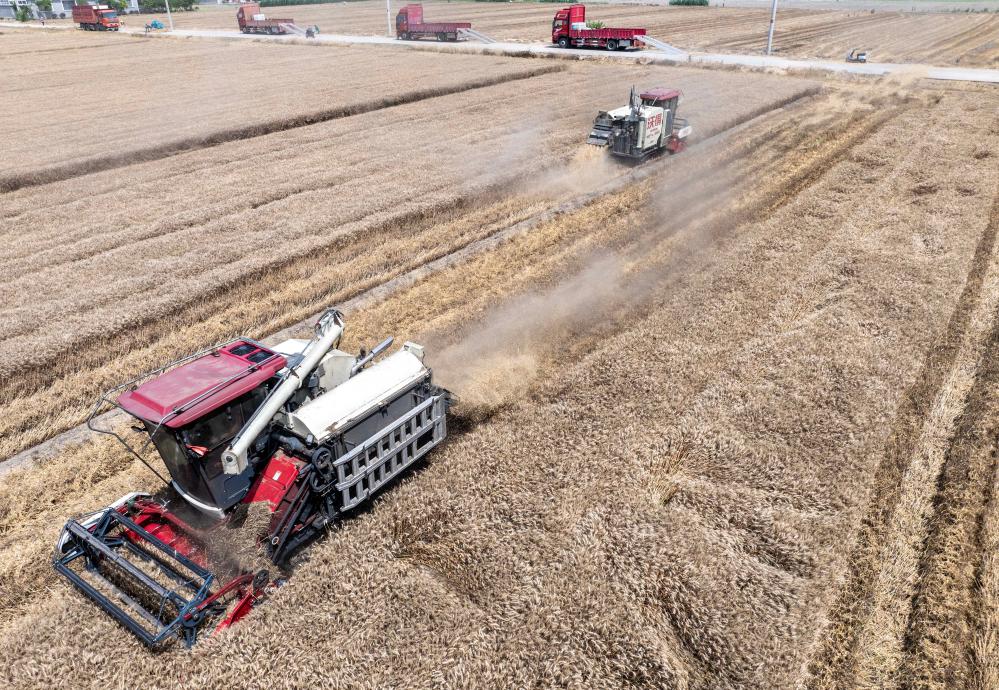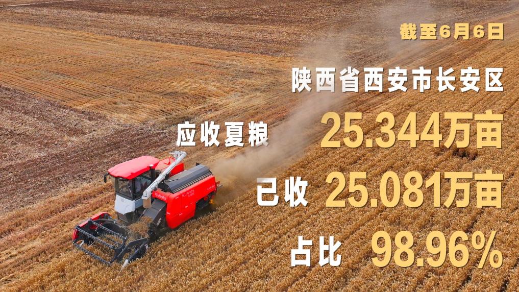 今年夏收开展以来,西安市长安区成立3个应急作业队伍,设置8个跨区作业接待站,提供油料、维修等一站式服务,组建5个技术组,实地研判小麦收获时间,开展技术指导工作。截至6月6日,长安区应收夏粮25.344万亩,已收25.081万亩,占比98.96%。