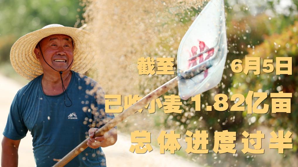 记者5日从农业农村部获悉,当前全国夏粮小麦大规模机收持续推进,截至6月5日,已收小麦1.82亿亩、总体进度过半。