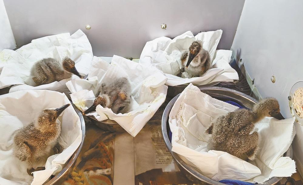 图为保温箱里的5只朱鹮宝宝。 受访单位供图