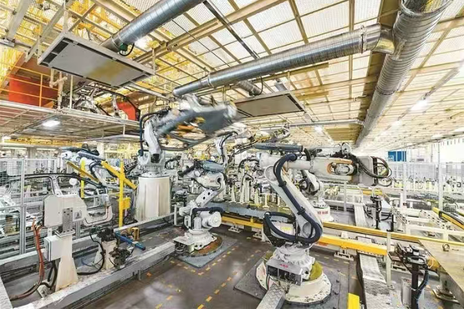 当天,记者在总装车间看到,自动化生产线有序运转,机械手臂一夹一起一落,卡位精准。