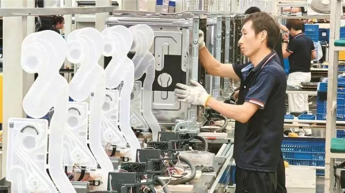 6月26日,记者走访位于西安浐灞国际港的陕西康佳智能家电有限公司,在生产车间内看到一派繁忙景象——自动化设备高速运转,各条生产线马力全开赶订单。据了解,陕西康佳生产的洗碗机远销海外,在国际市场赢得了良好口碑。