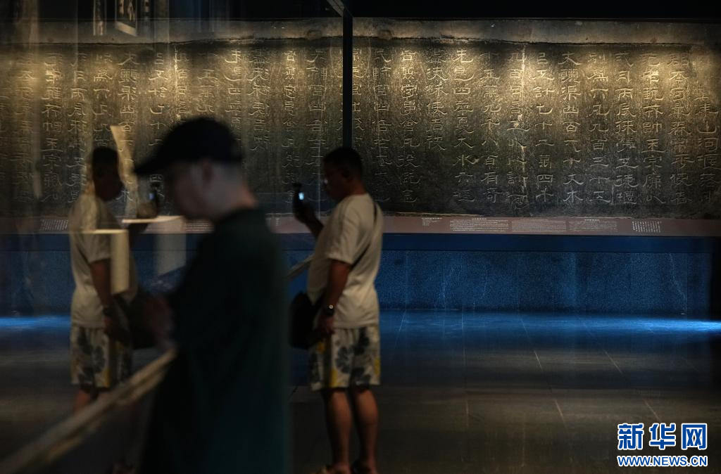 7月21日,游客在汉中市博物馆观看摩崖石刻“石门十三品”。新华社记者 李一博 摄pagebreak