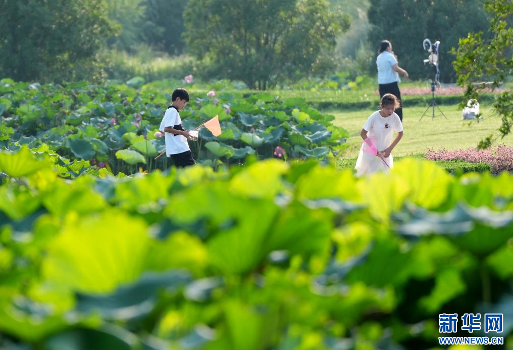 7月21日,儿童在汉中市天汉湿地公园内嬉戏。新华社记者 李一博 摄pagebreak