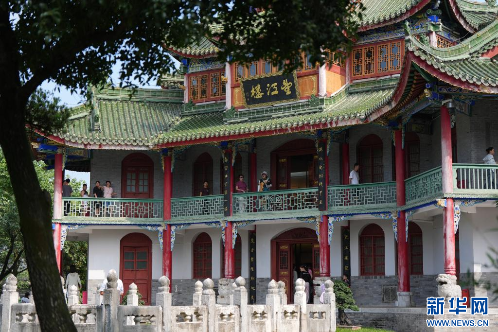 7月22日,游客在汉中市博物馆古汉台遗址上所建的望江楼参观。新华社记者 李一博 摄pagebreak